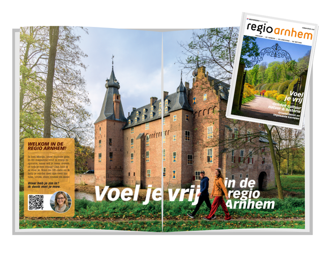 Van de levendige binnenstad van Arnhem, waar je de kunst en creativiteit van de modeacademie terug ziet komen in het unieke aanbod aan shops en cafés, reis je zo door naar het waterrijke gebied van de Liemers, de vruchtbare grond van de Betuwe of de landgoederen op de Veluwezoom. Voel je vrij in de regio Arnhem!