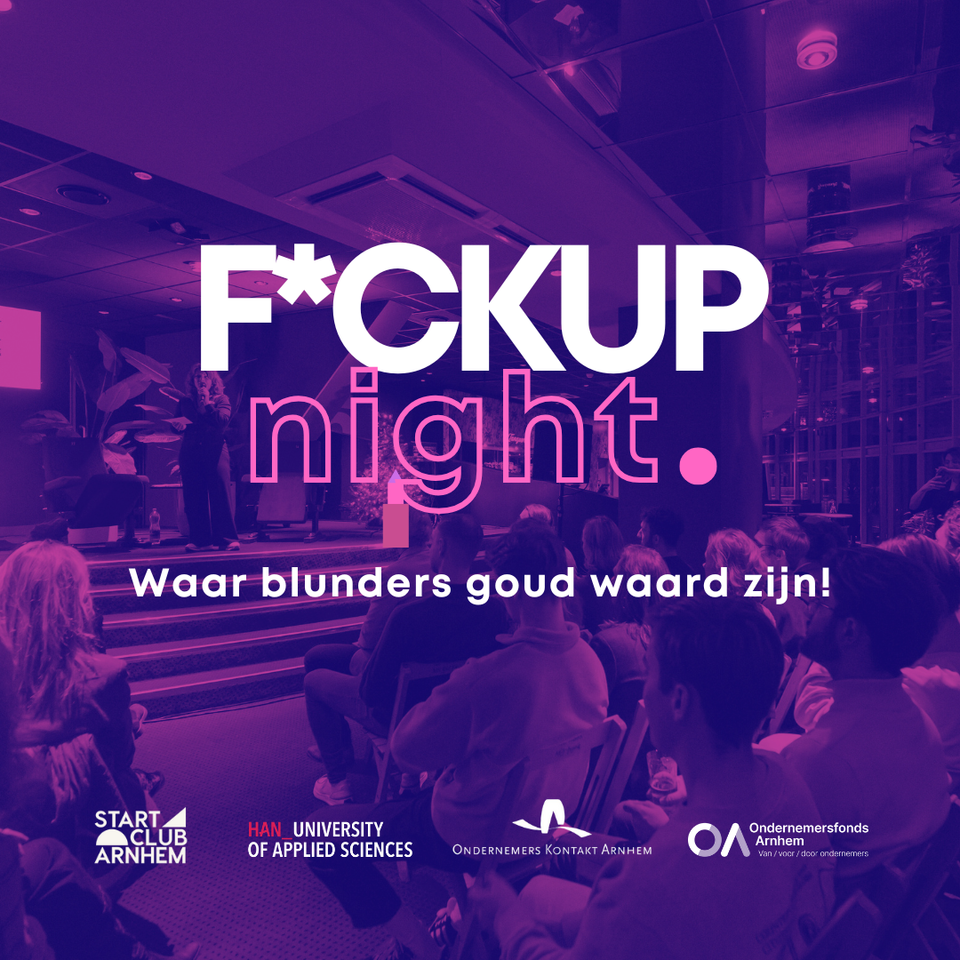 Iedere ondernemer maakt fouten, maar niet iedereen durft erover te praten. Tijdens de F*CKUP Night Arnhem hoor je de eerlijke, rauwe én inspirerende verhalen van Arnhemse ondernemers die hun meest memorabele ‘FuckUps’ met jullie delen én de lessen die ze daaruit trokken. Want, je zou het misschien niet verwachten van een succesvolle ondernemer, maar flinke blunders maken doet echt iedereen 😉.