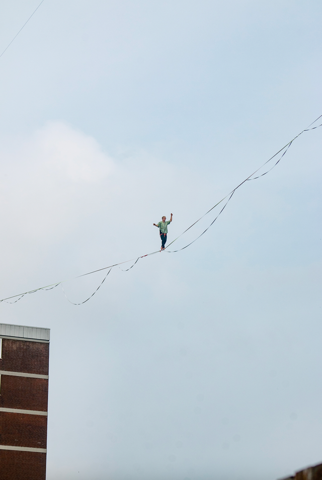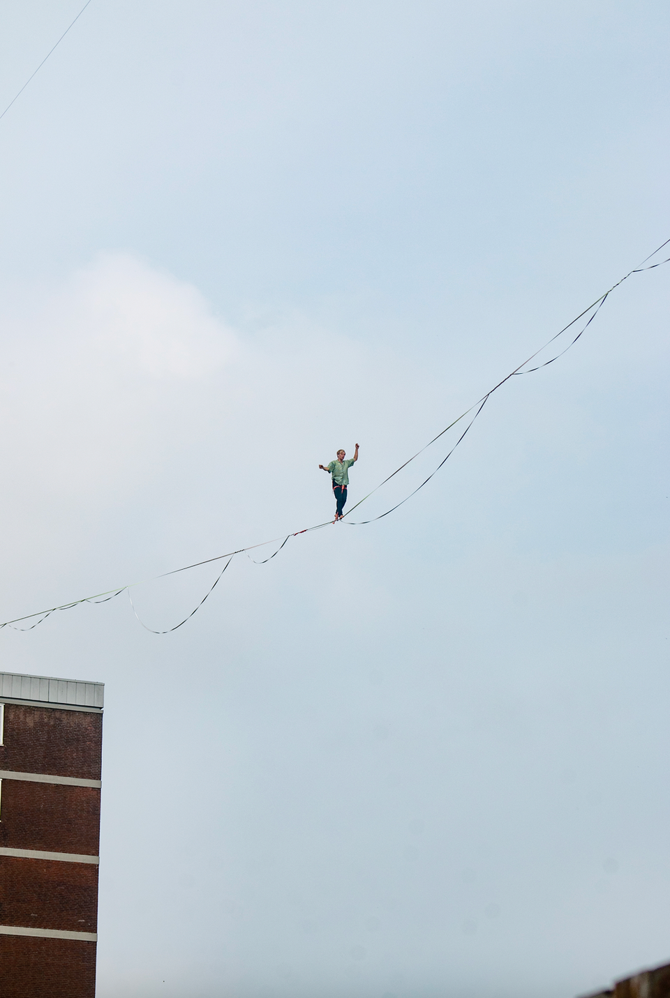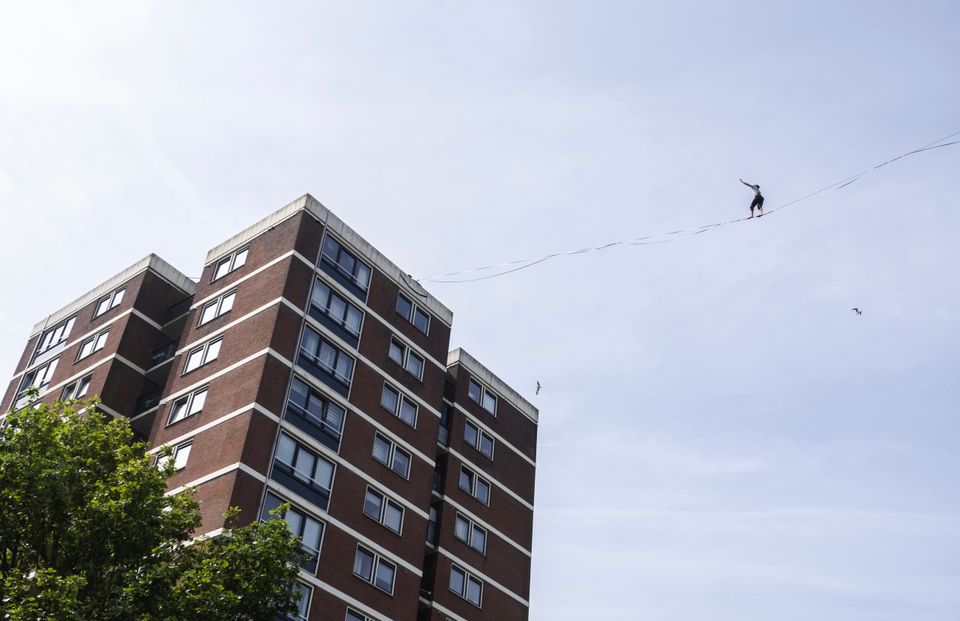 Op zondag 14 juni zullen artiesten op een koord van 90 meter lang en 30 meter hoog optreden boven het Croydonplein.