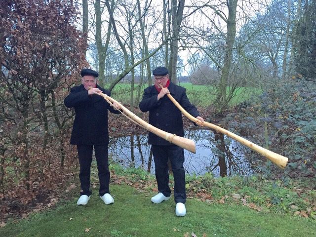 Tot slot voegen de hoornblazers Jan en Herman zich bij de groep, om kort uit te leggen hoe een hoorn wordt gemaakt en welke voorschriften daarbij horen.