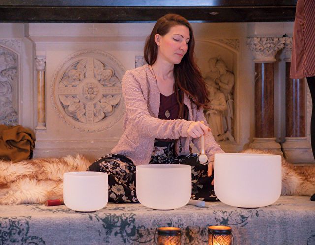 Zij verzorgt klankreizen door het hele land en begeleidt verdiepende sessies waarin vertraging, ontspanning en thuiskomen bij jezelf centraal staan.