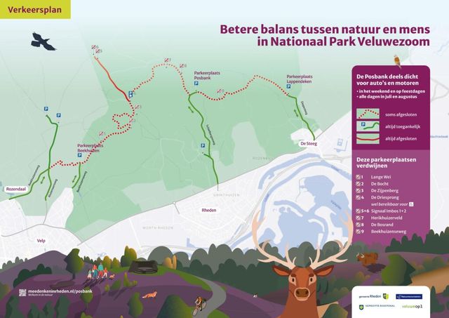 Vanaf 1 juli 2024 is de doorgaande weg over de Posbank deels afgesloten voor auto’s en motoren. Een aantal kleinere parkeerplaatsen van Natuurmonumenten dat aan de doorgaande weg ligt, gaat ook dicht.